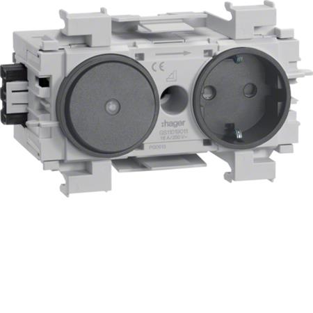 Frontmonteret stikkontaktenhed for Hager kanaler og DA stander med 80 mm låg. Ecoline stikkontakterne monteres i fronten af kanalen eller standeren og monteres med afdækninger.