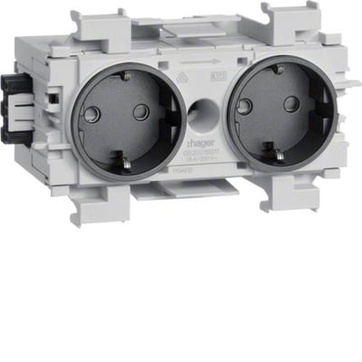 Frontmonteret stikkontaktenhed til Hager kanaler og DA stander med 80 mm låg. Ecoline stikkontakterne monteres i fronten af kanalen eller standeren og monteres med afdækninger.