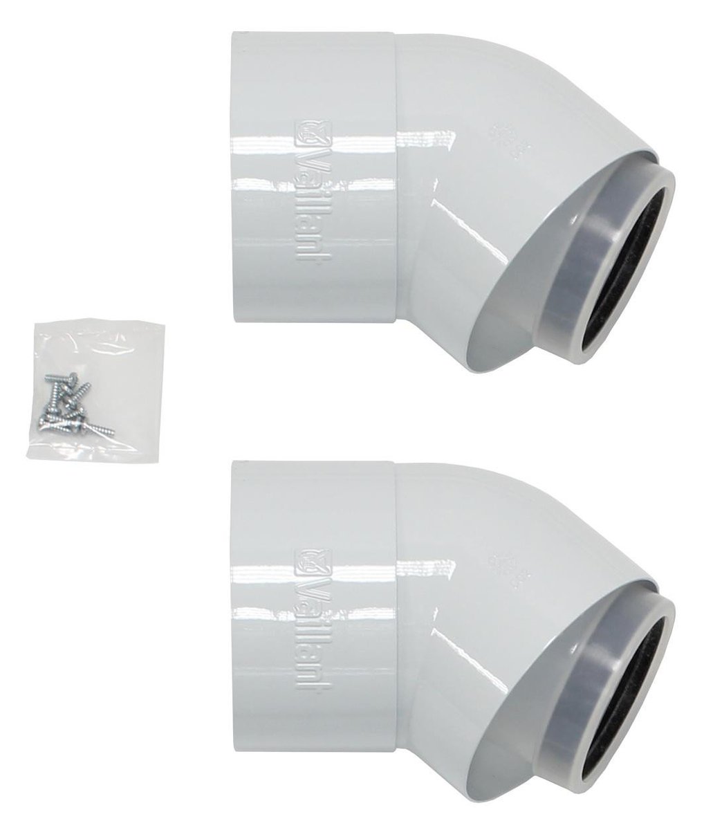 Vaillant bøjning til aftræk. 45 graders bøjning med en diameter på 80/125 mm. Kompatibel med ecoTEC, ecoCOMPACT og icoVIT.
