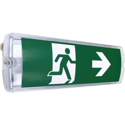 Alsidigt nødbelysningsarmatur til væg og loft. Op til 3 timers nøddrift ved strømsvigt. Læseafstand: max. 24 m. Inkl. 4 piktogrammer.