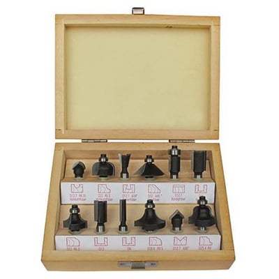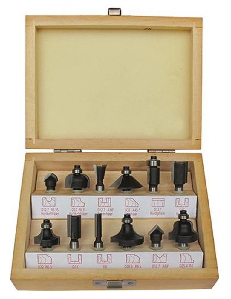 Fræsejernsæt med 12 dele og 8 mm skaft. Leveres i praktisk trækasse.