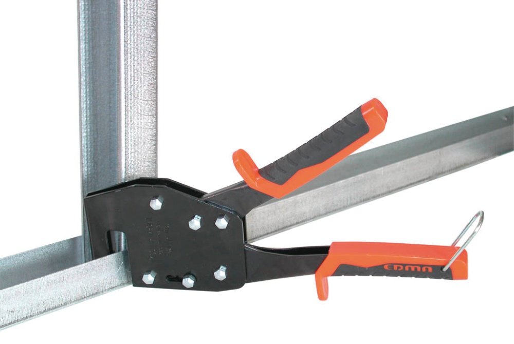 Til nem og hurtig sammennitning af stål profiler/skinner - uden brug af skruer.