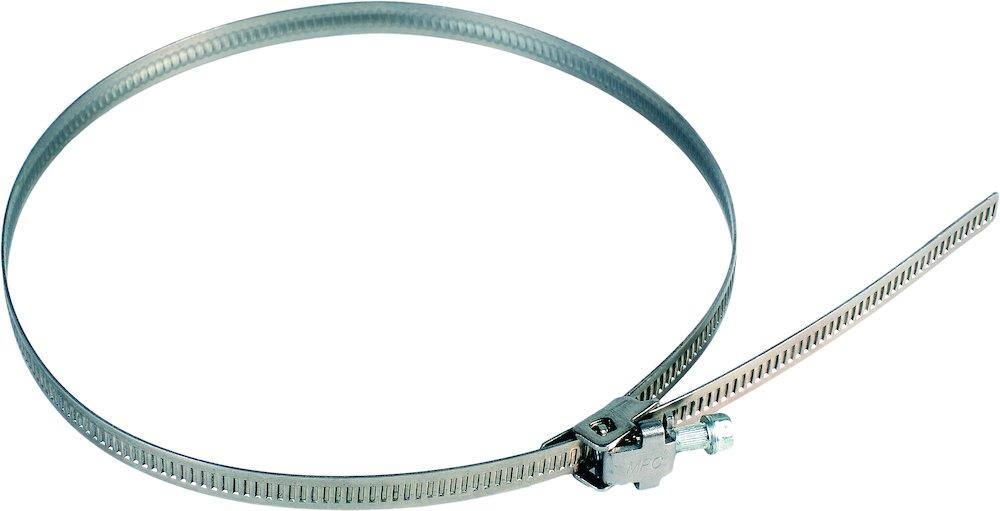 Spændebånd med hurtigudløserklemme, ideel til montering eller forsegling af fleksible og stive ventilationskanaler. Ekstra sikkerhedslås sikrer lukkethed efter montering.