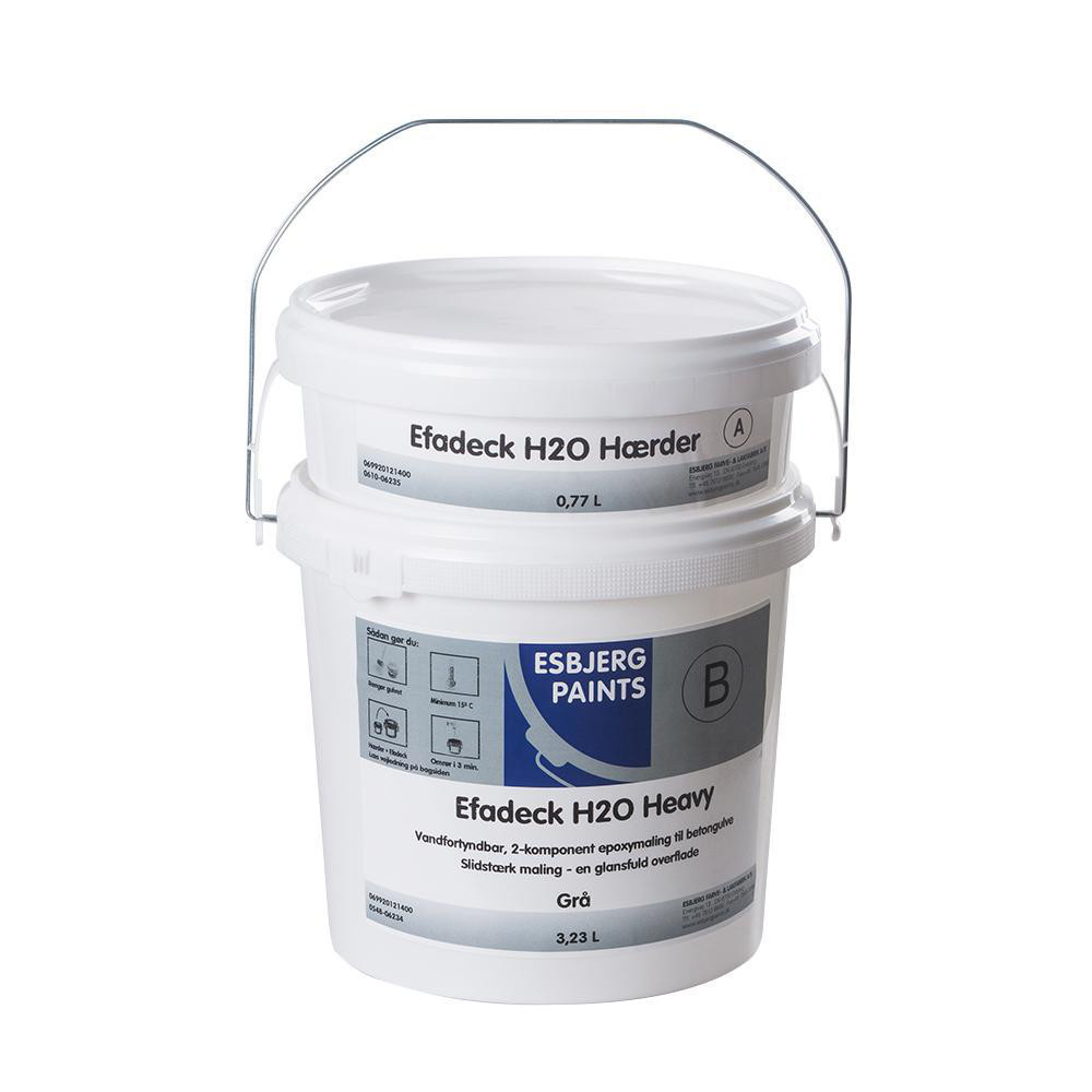 Efadeck H2O Heavy er en 2-komponent vandfortyndbar, blank epoxy-gulvmaling. Den er ideel til overfladebehandling af indendørs vægge og betongulve, hvor der stilles store krav til slidstyrke, rengørlighed og kemikaliebestandighed.