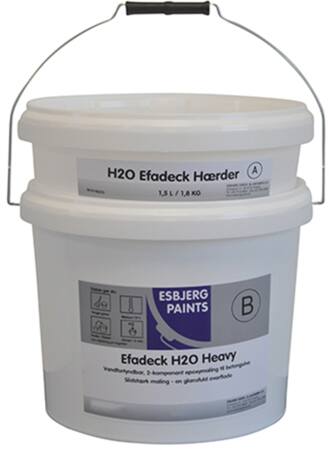 2-komponent vandfortyndbar, blank epoxy-gulvmaling. Blandes før brug med Efadeck H2O Hærder 0610 - 06235 i forholdet 4,2 : 1 (vol.). Til indendørs vægge og betongulve.