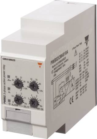 Effektrelæ (aktiv effekt) med 2 grænseværdier, 380-480 VAC og stikben fra Carlo Gavazzi.