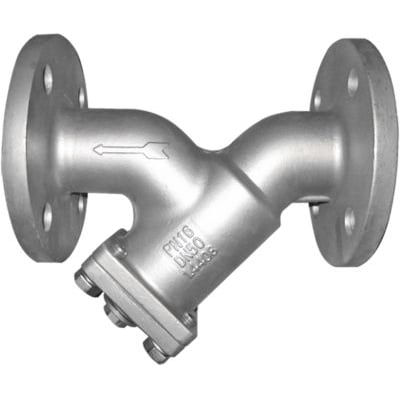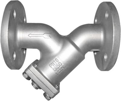 Snavssamler i rustfrit stål CF8M med filterindsats i hulplade AISI 316. Tilslutning med DIN flanger. Trykklasse: PN 16. DN: 50. Filterperforering: 1,0 mm.