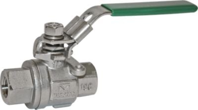2-delt kugleventil i rustfrit stål CF8M med BSPP-gevind. Fuldt gennemløb, udblæsningssikker spindel og låsbart håndtag. PN 63.