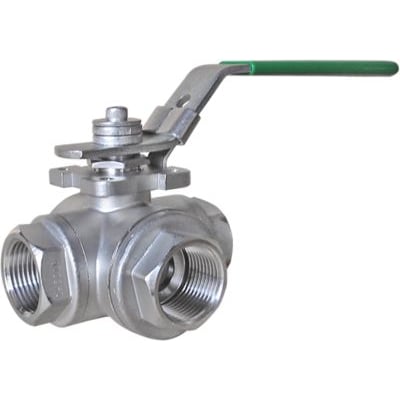 3-vejs kugleventil i rustfrit stål CF8M med BSPP-gevindender. Reduceret gennemløb, T-boret, udblæsningssikker spindel. PN 64.