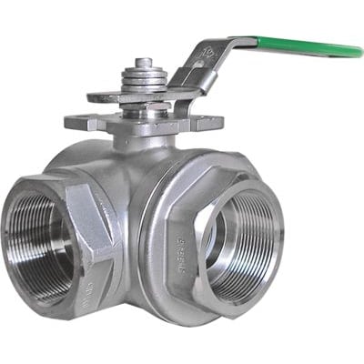 3-vejs kugleventil i rustfrit stål CF8M med T-boring. Velegnet til olie, luft, vand, gas og kemisk industri. PN 64.