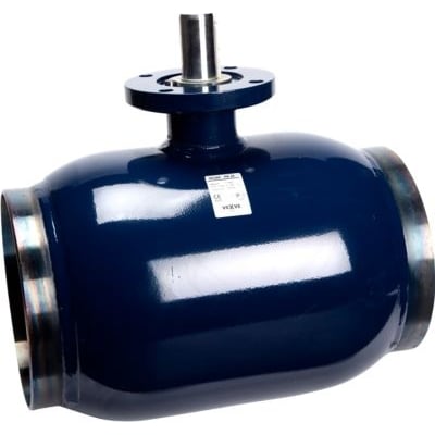 Helsvejst kugleventil i stål med kugle og spindel i rustfrit stål. Tilslutning med svejseender. Reduceret gennemløb og udblæsningssikker spindel. Kulstofforstærket PTFE sæderinge.