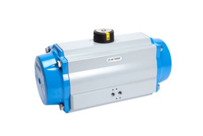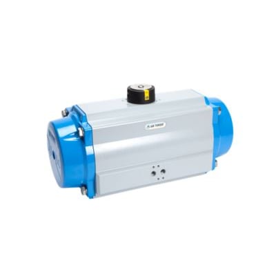 Pneumatisk aktuator med 90° drejning, dobbeltvirkende funktion og specialcoated aluminiumskabinet. Monteres iht. ISO 5211 F14.