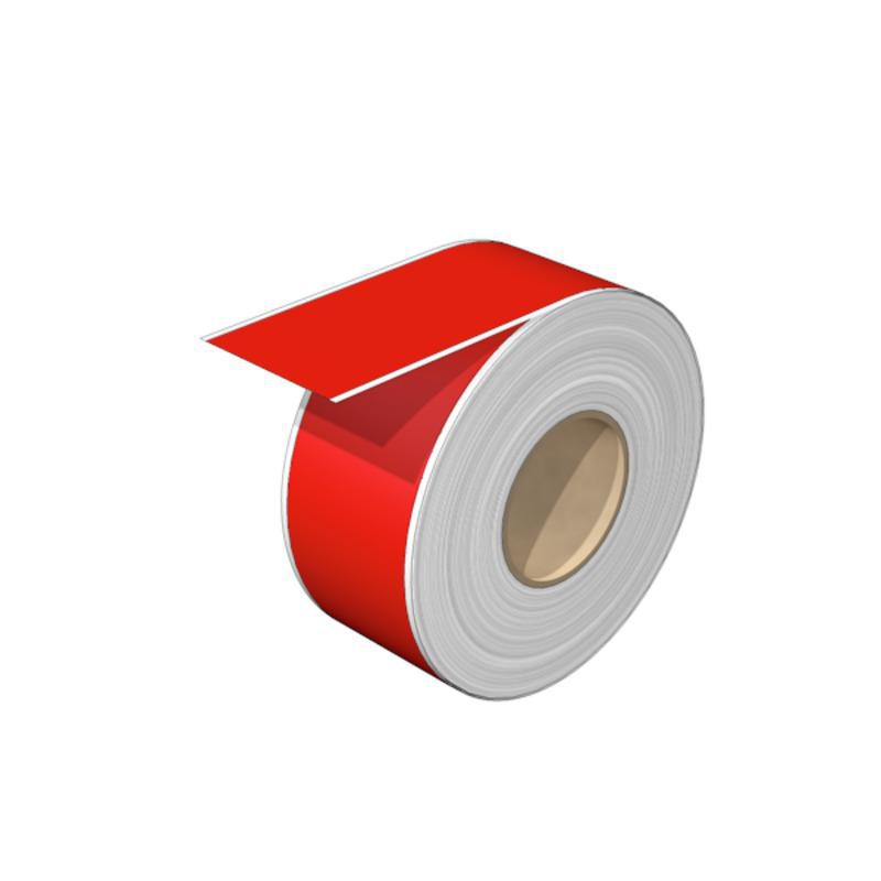 Disse selvklæbende mærkater er designet til effektiv identifikation af udstyr. De er fremstillet af halogenfri polyester og leveres på en rulle med 30 meters længde i en klar rød farve.