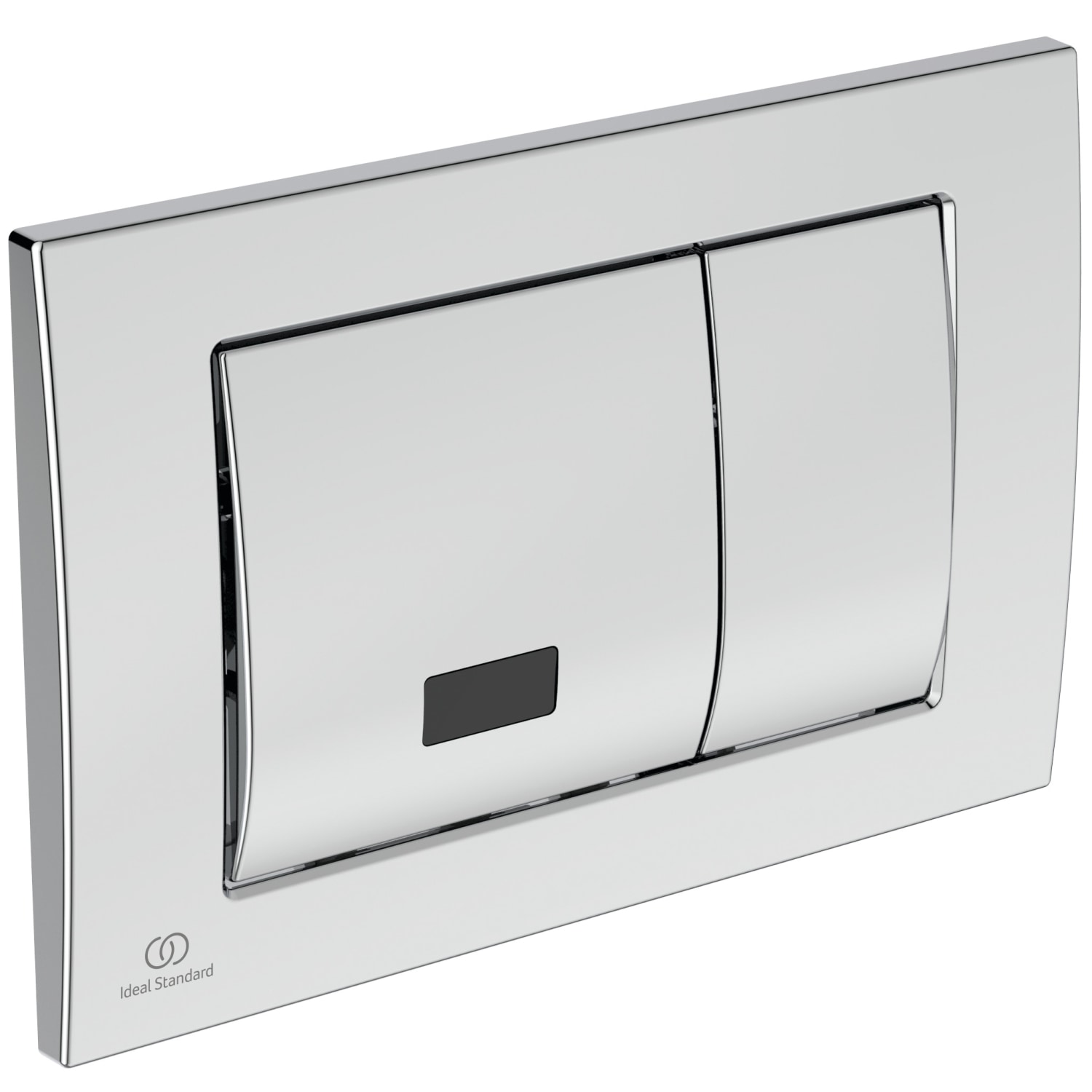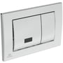 Stilfuld elektronisk IR-betjeningsplade i krom fra Ideal Standard. Kompakte mål på 243x17x163 mm med berøringsfri betjening og dobbeltskyl.