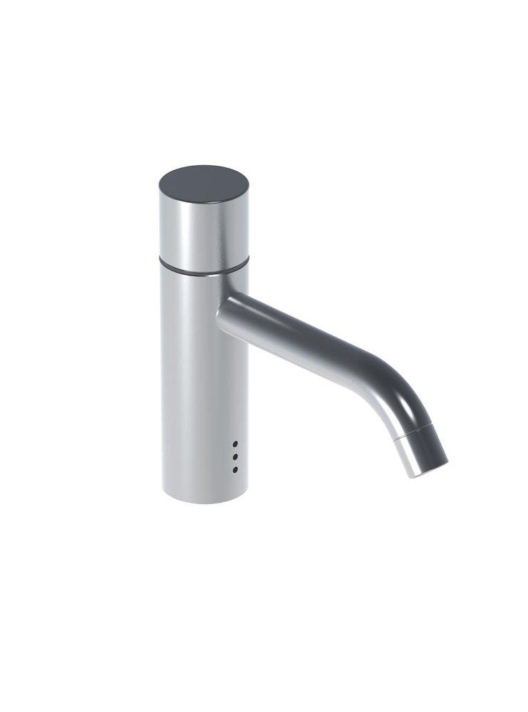 Elektronisk servanteventil i forkromet messing med 150 mm udlæg. Berøringsfri betjening og inkl. nettransformator. Uden bundventil.