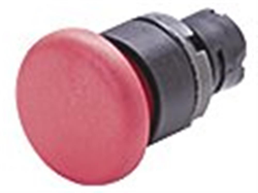 Elfin PTAFRK nødstopshoved med paddetryk, 40mm diameter og fjeder-retur. Farve: Rød.