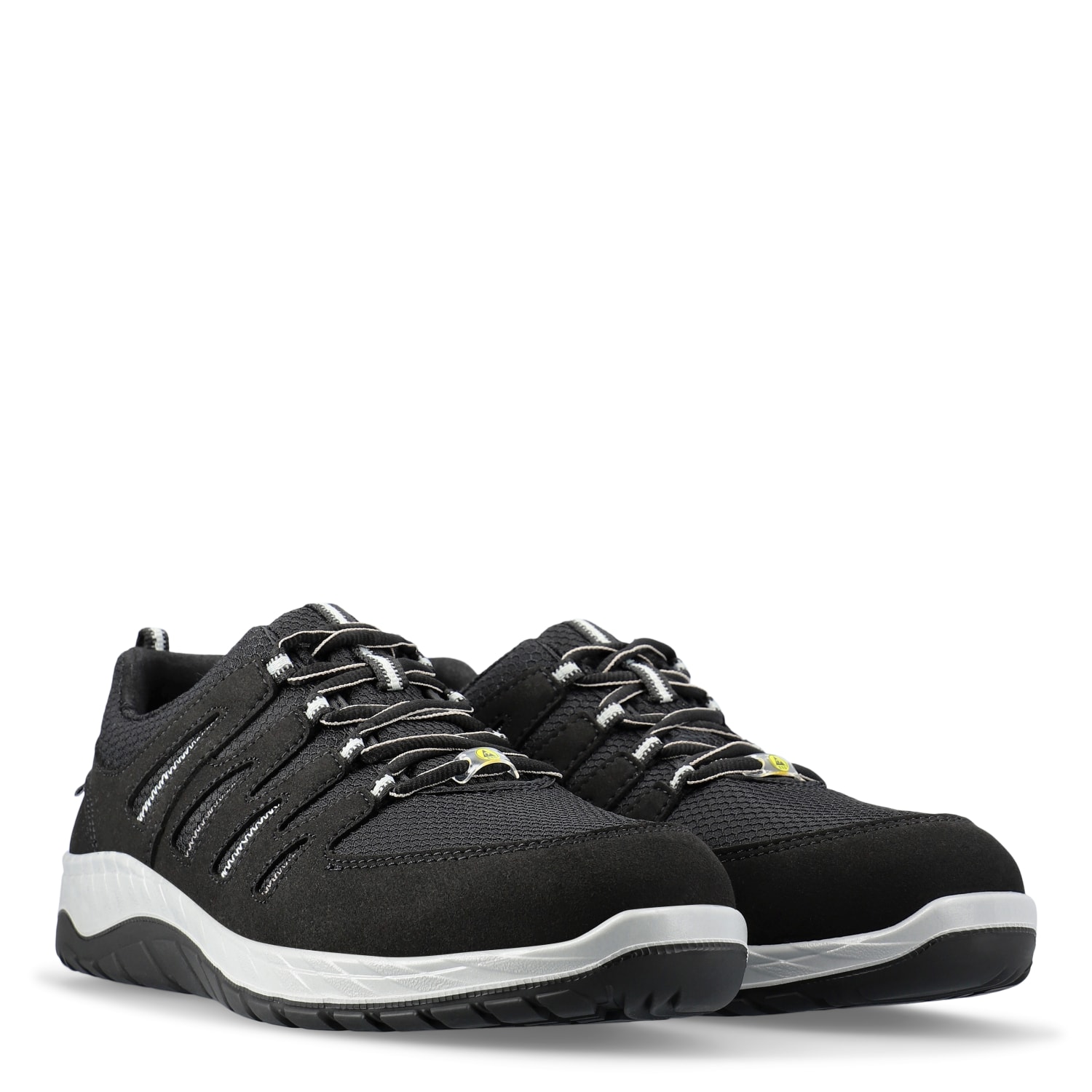 Let og sporty sikkerhedssko i slidstærkt, åndbart og vandafvisende microfiber/tekstil. Skridhæmmende ydersål med INFINERGY materiale, der absorberer stød og sender energi retur. ESD-godkendt og læderfri.