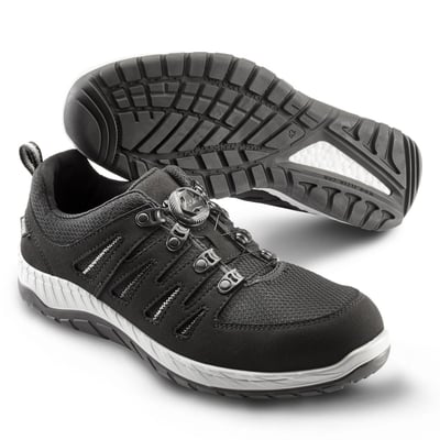 Let og sporty sikkerhedssko i slidstærkt, åndbart og vandafvisende microfiber/tekstil med BOA Fit System. INFINERGY-sålkernen absorberer stød og returnerer energi.
