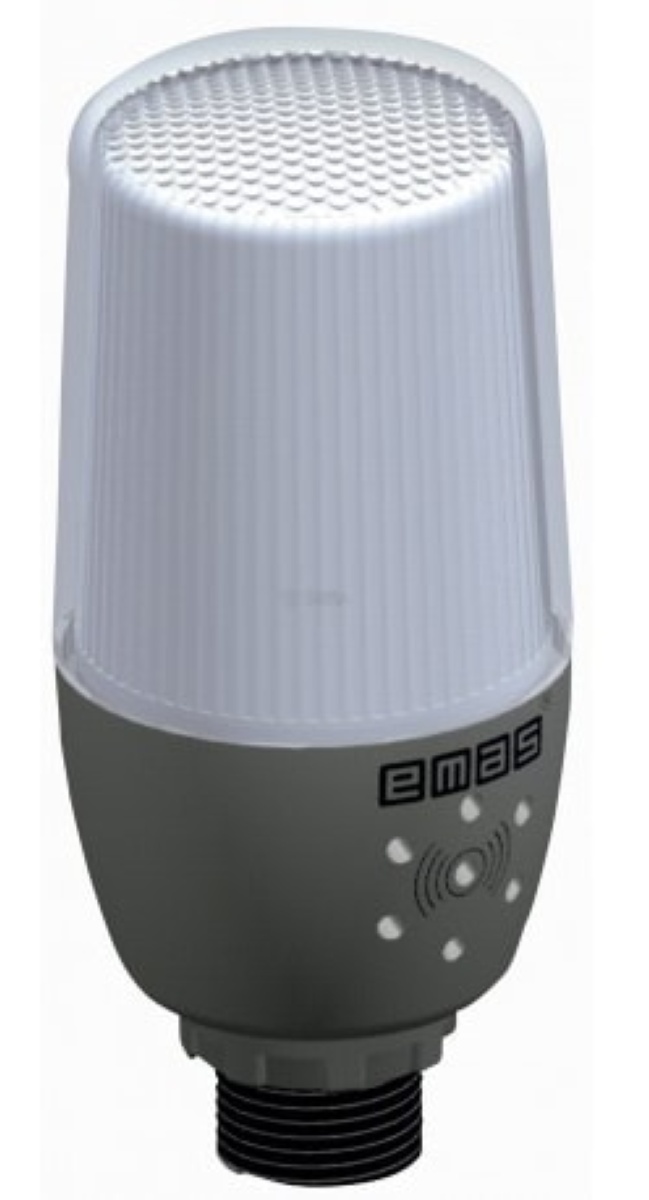 Ema flerfarvet lystårn med 5 farver (hvid, rød, blå, gul, grøn) og 1 lydgiver (90db). Emas lystårne har en nem ledningsføring til 22mm installering.