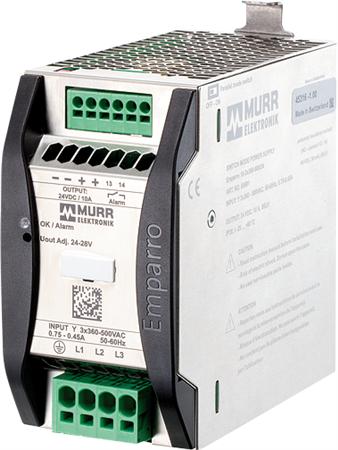 Emparro strømforsyning er en 3-faset strømforsyning med et input på 360 - 500 Vac og et output på 24-28V / 10ADC. Den har en Power Boost funktion, der giver 50% ekstra strøm i 5 sekunder.