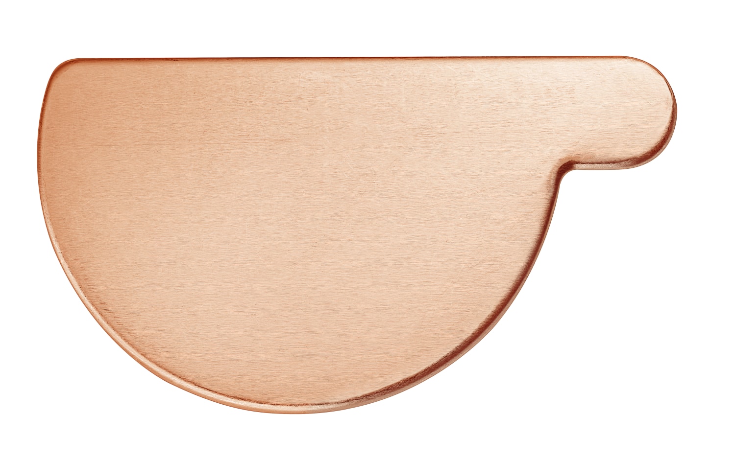 VMZINC endebund i kobber, designet til venstre side af en halvrund tagrende med en bredde på 333 mm.