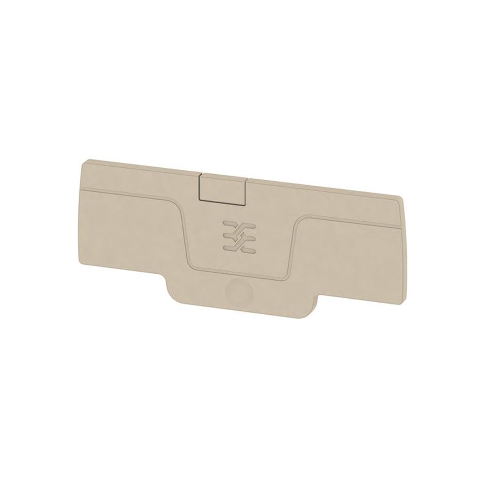 Endeplade AEP A4C fra Weidmüller i beige. Med fjederterminaler og PUSH IN teknologi for hurtig og stabil ledningsmontage.