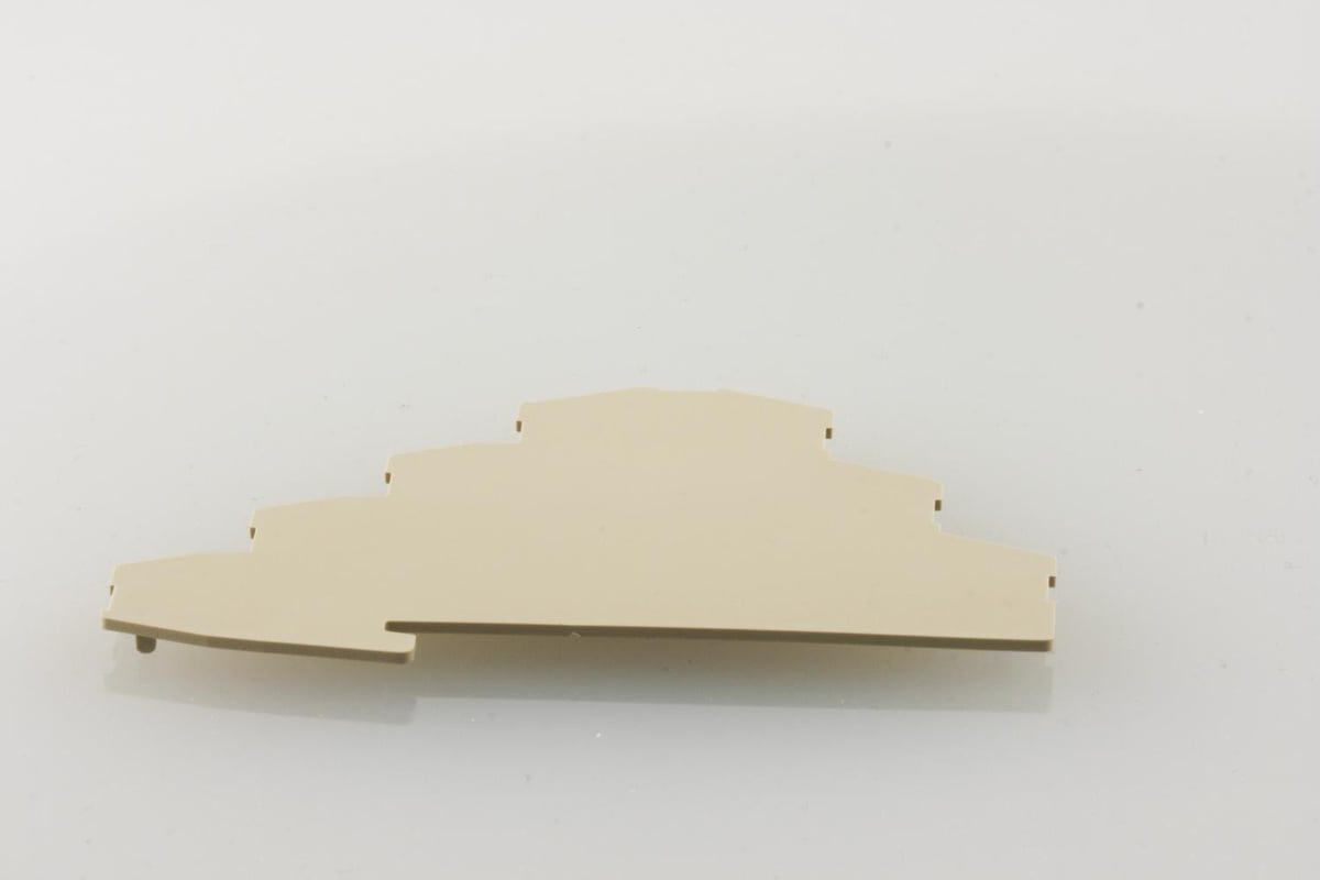 Denne endeplade er designet til ZMAK 2.6 og er fremstillet i beige Wemid materiale. Den er kompatibel med motorklemmer og sikrer en pæn og sikker afslutning af dine installationer.