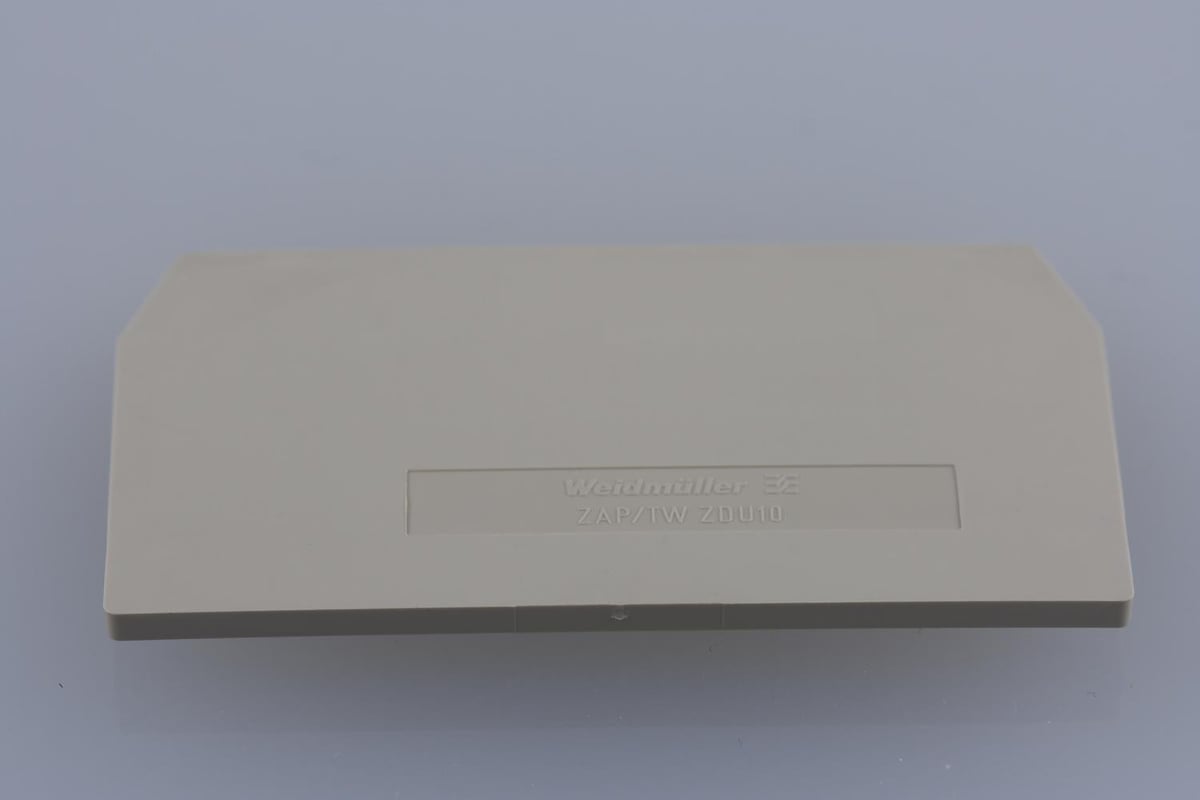 Denne endeplade er designet til at passe perfekt til ZDU 10 samleskinner. Den er fremstillet i beige Wemid.