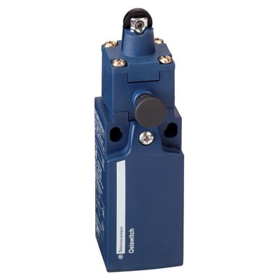 Endestop med reset, stempel/rulle NO+NC med moment. Standard format, fixed krop og stempelhoved i kunststof. Kontaktsammensætning: 1 NC + 1 NO.