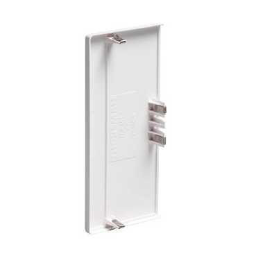 Endestykke TEK-ES 161-3 i hvid plast. Dimensioner: 72 mm højde og 161 mm bredde.