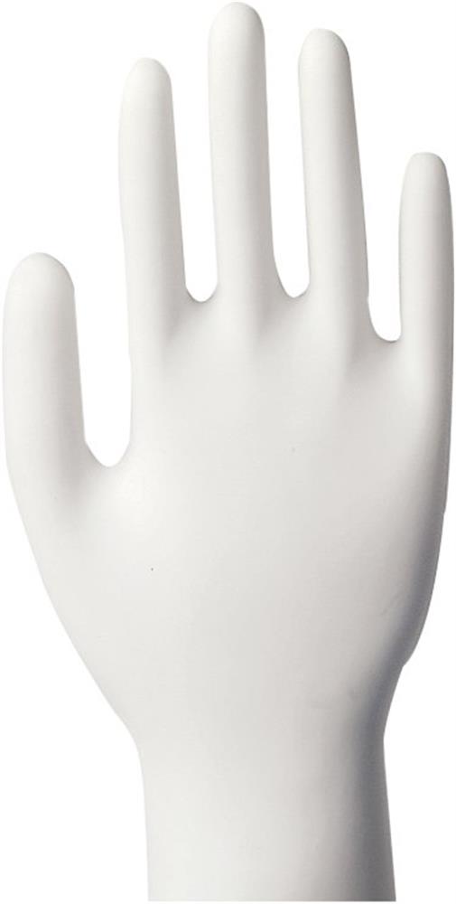 Undersøgelseshandske i vinyl fra Abena. Pudderfri, usterile og transparente med glat overflade og rullekant. Godkendt til håndtering af ikke-fede fødevarer.