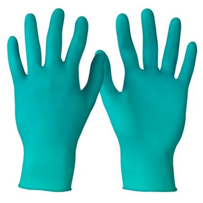 Nitril engangshandske TouchNTuff med pudder. Handsken er grøn, 24 cm lang og 0,12 mm tyk. Velegnet til laboratorier, kemisk industri, elektronik og lettere rengøring.