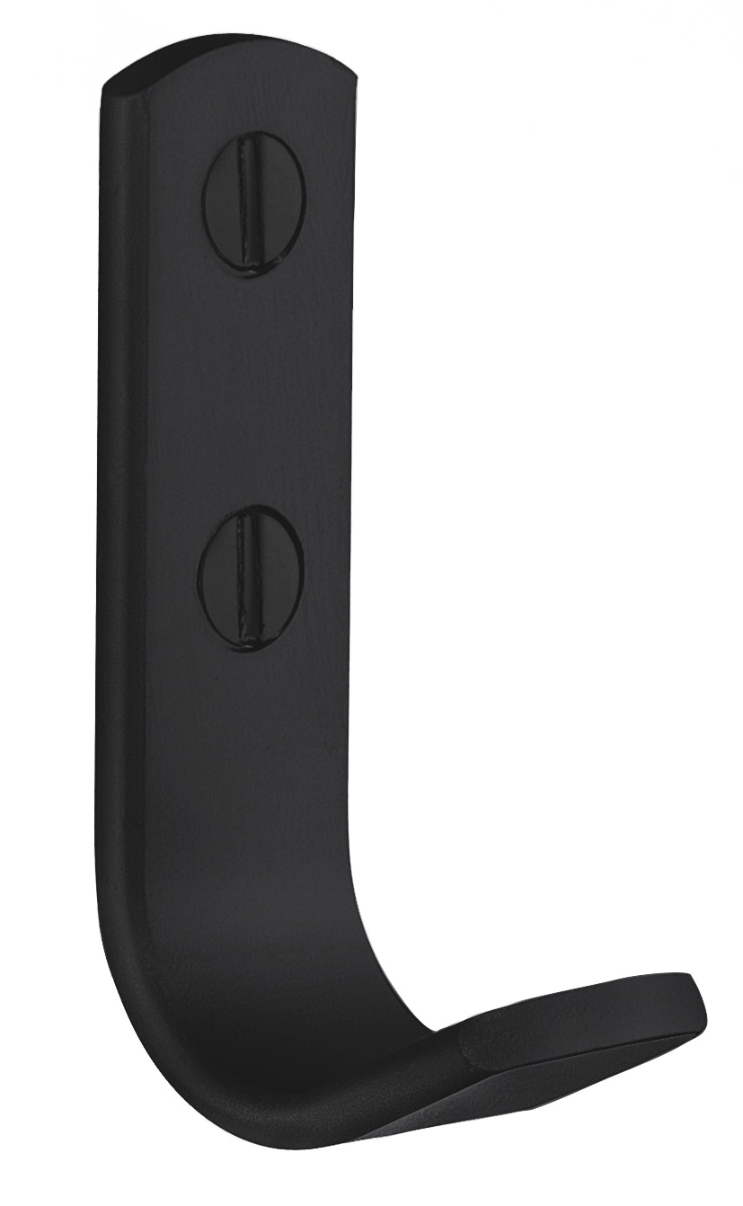 Denne enkle krog er fremstillet af sort aluminium og har en elegant mat overflade. Den er ideel til ophæng af f.eks. håndklæder eller andre genstande i badeværelset eller entréen.