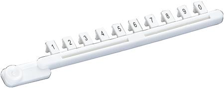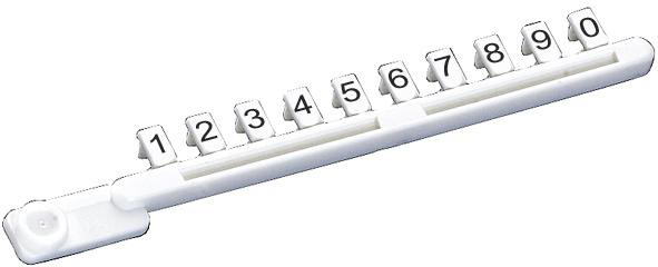 Enkelt mærke i hvid med sort skrift 9704A/1-0 B fra Wieland.