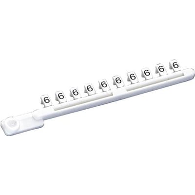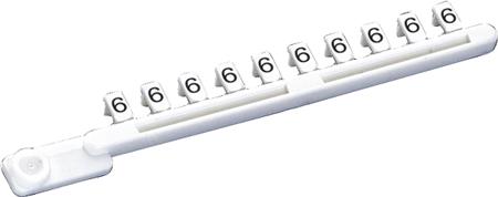 Dette mærkeskilt fra Wieland er hvidt med sort skrift (9704A/6 B).