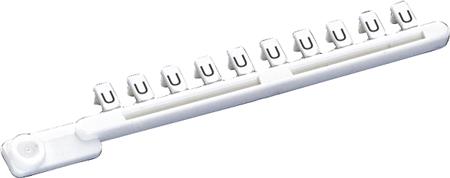 Mærkeskilt fra Wieland, Mrk:U. Enkelt mærke i hvid med sort skrift 9704A/U GB.