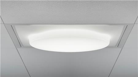 Løsningen udgør en integreret del af systemloftet, uanset om der anvendes lofter med synlige T-skinner eller med skjult bæreværk. Sammenlignet med runde lamper er det ikke nødvendigt at lave huller i lofter og anvende tilhørende aflastningsplader.