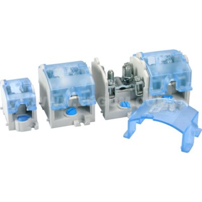 Ergom stigeledningsklemme er en robust 1-polet klemme til tilslutning af stigeledninger op til 25mm² og 4 afgreningsklemmer på 10mm².