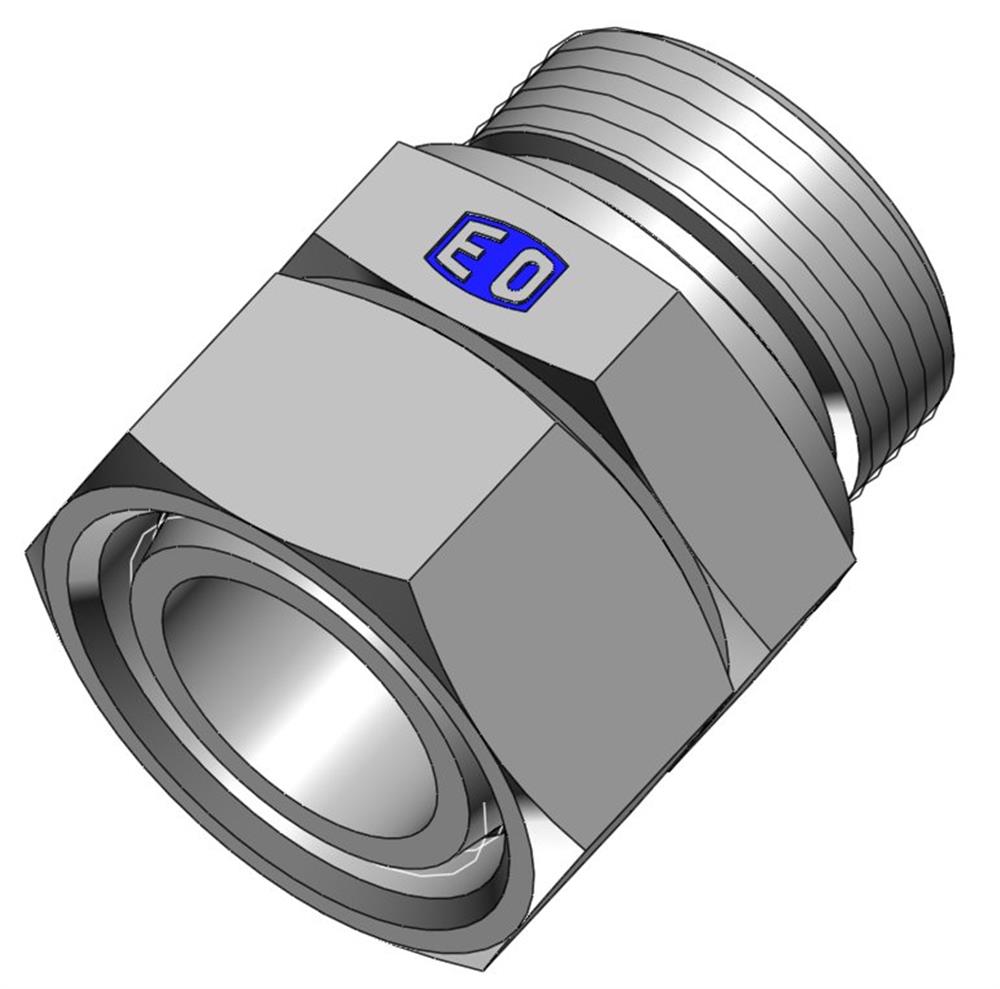 Hydraulisk indskruning med formonteret omløber til hydraulik forskruning og overgang med udvendigt BSPP gevind. Sikrer tæt og problemfri samling.