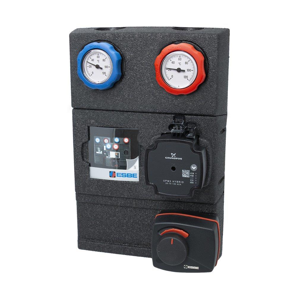 En præfabrikeret enhed bestående af styreventil, aktuator ARA661, 230V (som kræver ekstern styreenhed), cirkulationspumpe og afspærringsventiler i et sammensat produkt.
