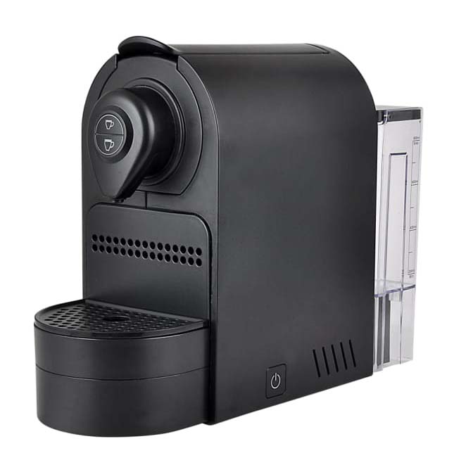 Kompakt espresso kaffemaskine designet til kapsler, udført i elegant sort plast. Perfekt til hurtig og nem kaffebrygning i hjemmet eller på kontoret.