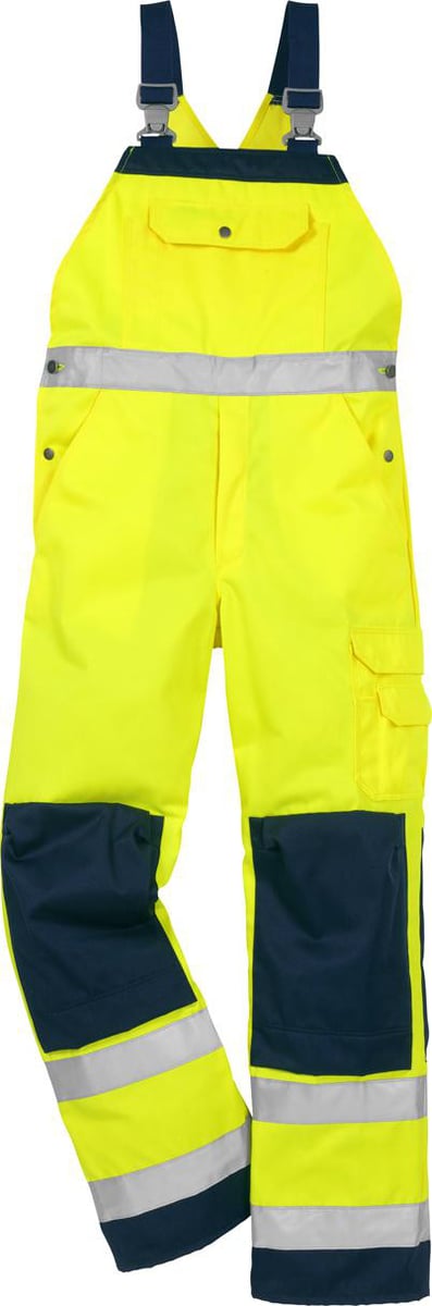 Høj synlighed overalls med knælommer og smuds-, olie- og vandafvisende materiale. To syninger på refleksbånd for holdbarhed.