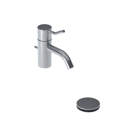 Et-grebsblander i messing med keramisk ventilenhed og fast tud. Vandbesparende funktion og medfølgende bundventil med løft-op stang.