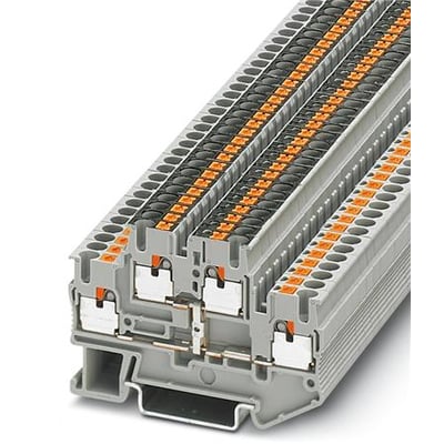 Grå etageklemme med potentialestik, push-in-tilslutning, 500 V, 22 A og tværsnit på 0,14 mm² - 4 mm².