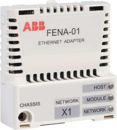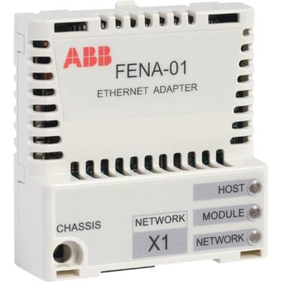 Denne Ethernet adapter, model FENA-01, er en essentiel komponent til udvidelse af funktionaliteten af ABB frekvensomformere. Den muliggør integration i netværksmiljøer, hvilket giver mulighed for fjernovervågning, styring og datalogning.