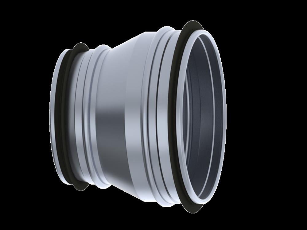 Centrisk ventilations-reduktion fra NORDduct, der forbinder rør og dele af forskellige størrelser. Produceret i galvaniseret stål og overholder tæthedsklasse D.