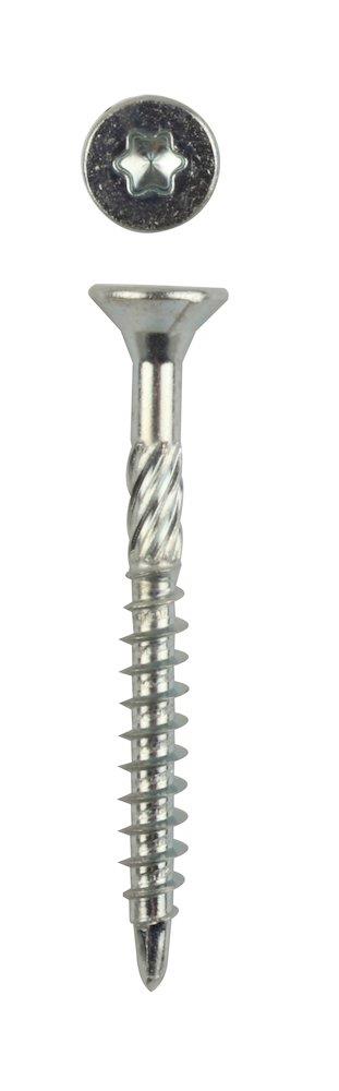 Boreskrue i stål, 4,0 x 60 mm, med TX15 kærv og borspids. Ideel til fastgørelse af træelementer, hvor risiko for revner og spaltning er øget. Pakke med 200 stk.