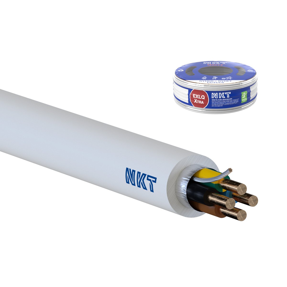 Halogenfrit installationskabel (EXLQ Xtra) til fast installation i rør eller kanaler, indendørs og udendørs. 4G1,5 mm², 450/750V, hvid kappe, 50 meter ring.