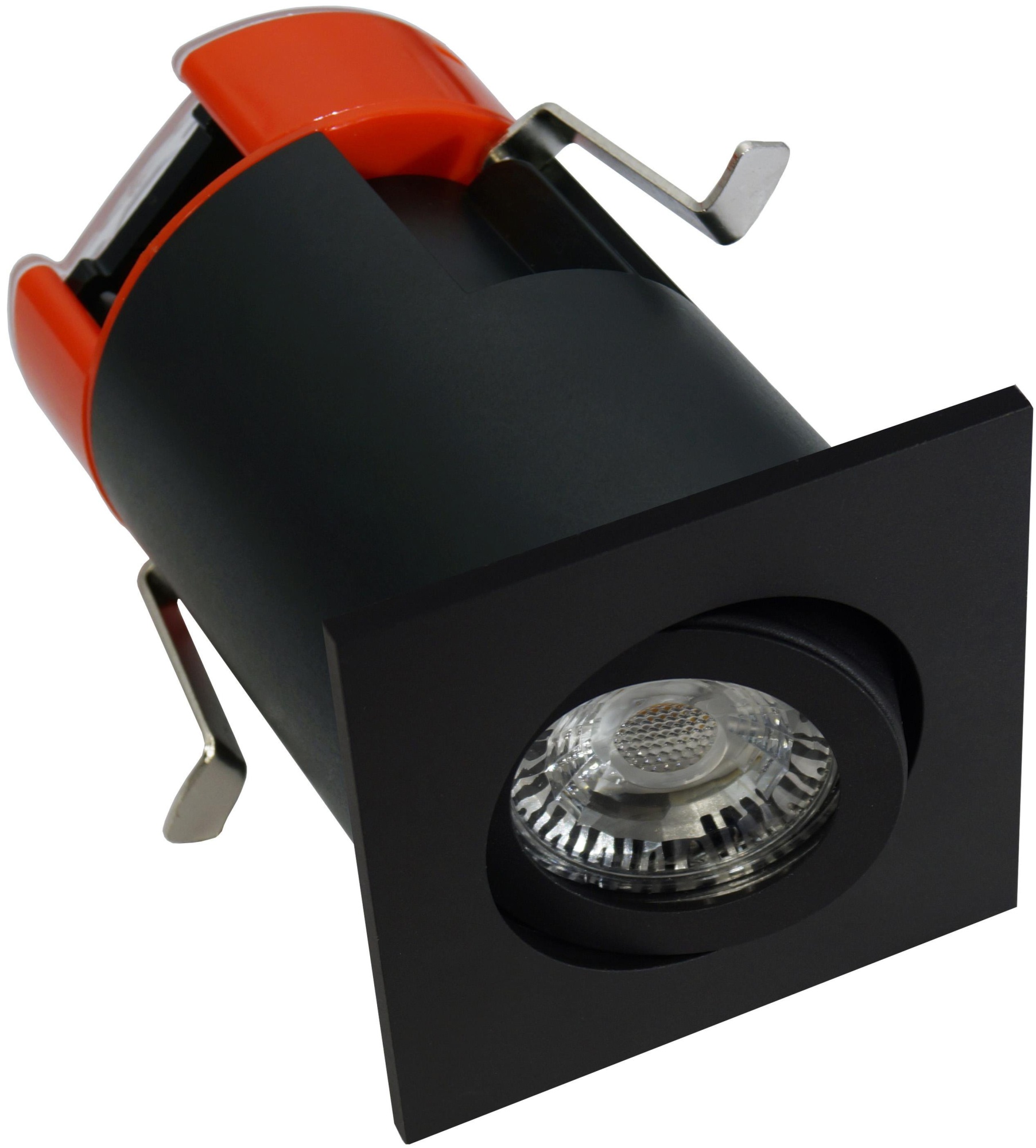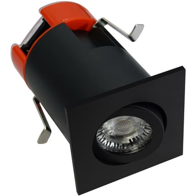 Firkantet indbygningsspot fra Daxtor. Mål: 88x88mm. Udskæringsmål: Ø76mm. Indbygningshøjde: 120mm. GU10 sokkel, max 7 watt LED.