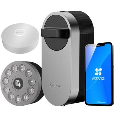 Multifunktionelt tastatur til Ezviz Smart Lock DL01S. Giver mulighed for oplåsning med kode eller kort. Sabotagealarm og indbygget dørklokke.